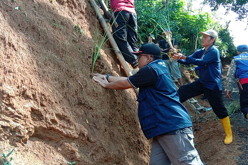 Cegah Longsor, TNI-Polri Dan BPBD Tanam Rumput Vetiver Di Gumelar
