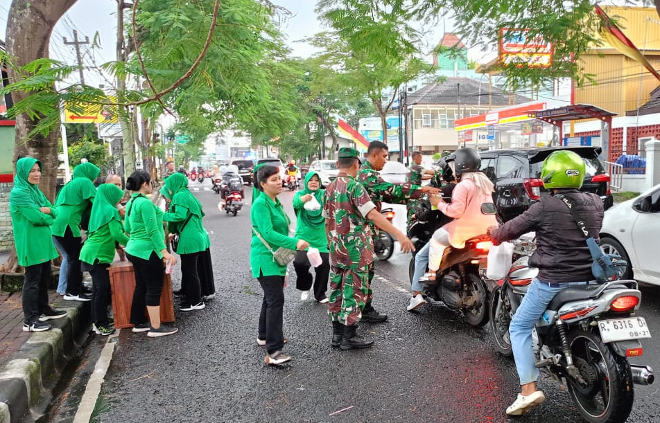 Banyumas – Berkah ramadhan 1445 H tidak dilewatkan untuk saling berbagi, untuk itu Koramil 01/Purwokerto Utara bersama Persit Ranting 02 membagikan ratusan paket takjil kepada masyarakat pengguna jalan yang melintas di depan Koramil tersebut dan para tukang ojek pangkalan maupun online di Kecamatan Purwokerto Utara Kabupaten Banyumas. Minggu sore 24/03/2024.