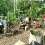Tampak Serka Sujoto Babinsa Cihonje bersama Kades Cihonje dan warga sedang melaksanakan pembuatan pondasi rumah tidak layak huni milik warga yang akan di rehab dari program RTLH bantuan dari Dirperkin Kabupaten Banyumas.