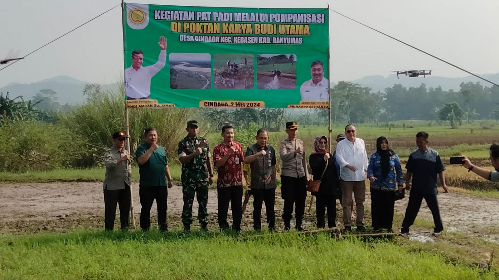 ‘’Bahwa hari ini kita bersama-sama melaksanakan pengecekan guna mewujudkan percepatan tanam dan juga ketahanan pangan nasional, dan juga meninjau sistem pompanisasi sumber air yang akan digunakan untuk mengairi lahan sawah tadah hujan yang umumnya memiliki keterbatasan ketersediaan air yang selama ini hanya mengandalkan air hujan sebagai sumber air, lahan sawah tadah hujan sangat berisiko terkena kekeringan, untuk itu pompanisasi sangat diperlukan guna meningkatkan produksi padi’’.