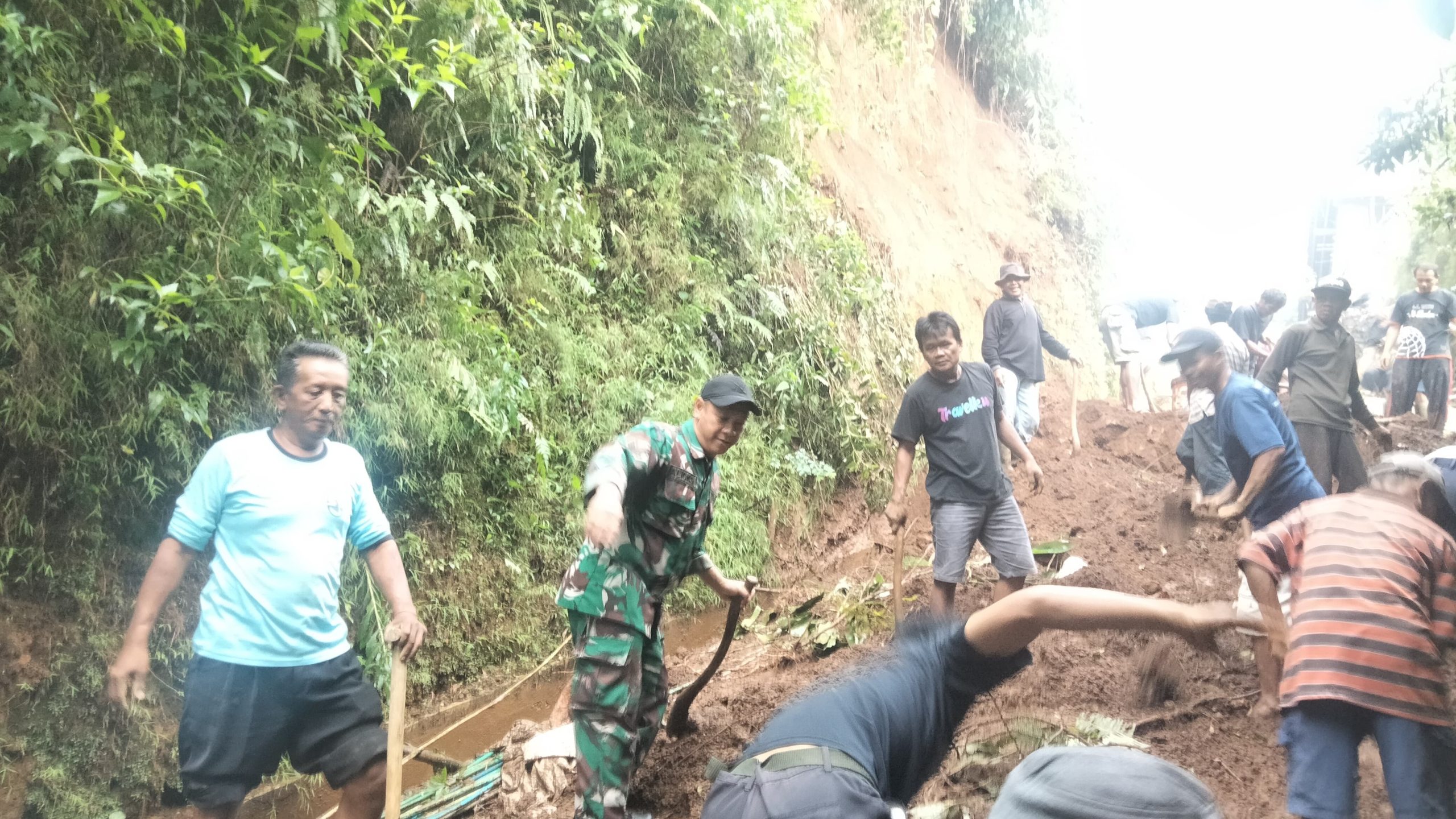 Menanggapi laporan dari warga, Babinsa Koramil 15/Pekuncen bertindak cepat dengan meninjau lokasi dan melakukan pembersihkan material tanah longsor. Dalam proses pembersihan material yang dilakukan, Babinsa beserta warga bekerja tanpa henti untuk membuka kembali akses jalan yang tertutup longsor.