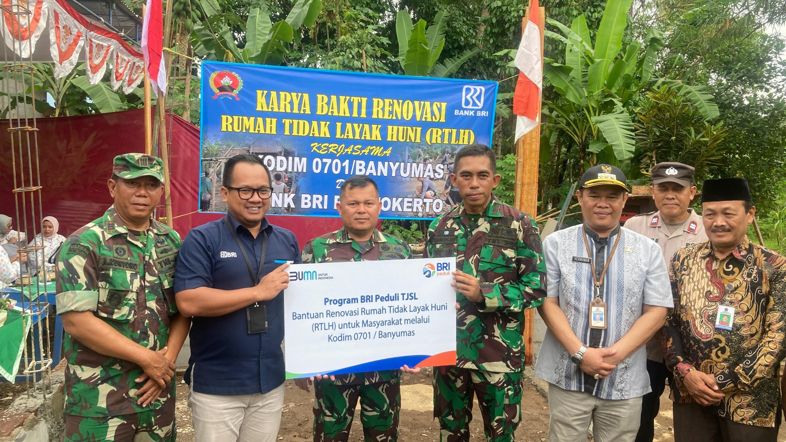 Banyumas – Komando Distrik Militer (Kodim) 0701/Banyumas Korem 071/Wijayakusuma dan Bank Rakyat Indonesia (BRI) Purwokerto kolaborasi kerjasama rehabilitasi rumah tidak layak huni (RTLH) bagi keluarga kurang mampu.