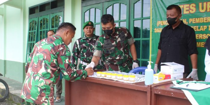 “Dalam program pencegahan pemberantasan penyalahgunaan dan peredaran gelap narkoba, kita juga melaksanakan penyuluhan dan melakukan cek urine terhadap anggota TNI serta PNS, kegiatan tes urine bukan untuk mencari kesalahan namun justru untuk mencegah jangan sampai ada anggota TNI dan PNS yang terlibat penyalahgunaan narkoba,” ujar Pasi Intel.