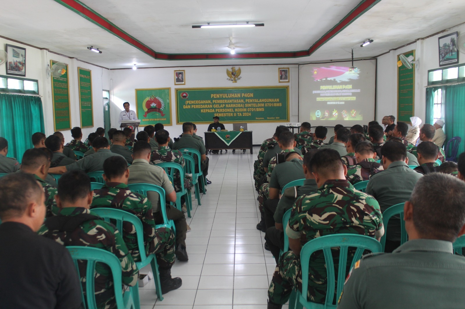 Salah satu upaya preventif dalam mencegah penyalahgunaan Narkoba, Puluhan TNI anggota Komando Distrik Militer 0701/Banyumas Korem 071/Wijayakusuma, mengikuti kegiatan penyuluhan dan tes urine di Makodim 0701/Banyumas dalam rangka Pencegahan, Pemberantasan, Penyalahgunaan dan Peredaran Gelap Narkoba. Tes urine itu dilakukan guna mencegah tindak penyalahgunaan zat narkotika atau obat-obatan terlarang yang di pimpin langsung Pasi Intel Kodim 0701/Banyumas Kapten Cba Triyono. Senin (25/11/2024).