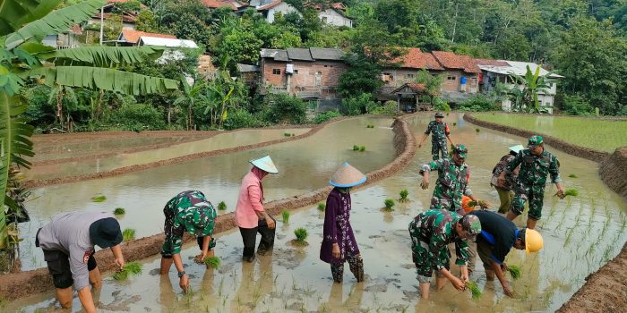 Keterlibatan Koramil 14/Gumelar bersama Polsek Gumelar dan Perangkat Desa Samudra dalam penanaman padi bersama petani sebagai bentuk dukungan serta upaya dalam mewujudkan ketahanan pangan di wilayah. Kali ini WS. Danramil 14/Gumelar bersama Anggota, Kapolsek Gumelar dan Kades Samudra melaksanakan pendampingan penanaman padi varietas inpari 32 di lahan seluas 125 ubin milik Bapak Rustam yang merupakan salah satu Kelompok Tani Mugi Mulyo Desa Samudra Kecamatan Gumelar Kabupaten Banyumas.