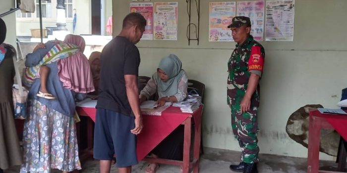 Babinsa Koramil 05/Sumbang Dampingi Pelayanan Posyandu di Wilayah Binaan