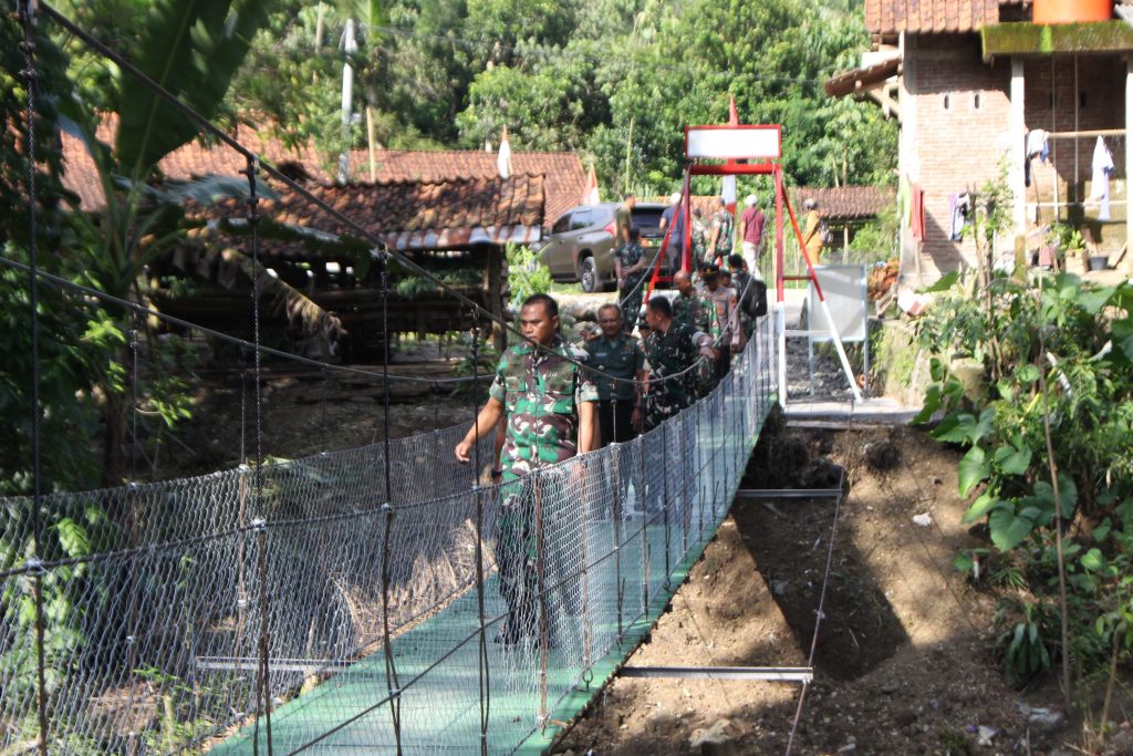 Jembatan sepanjang 50 meter dengan lebar 1,20 meter tersebut ditinjau langsung oleh jajaran pimpinan TNI guna memastikan kekuatan konstruksi dan fungsinya aman serta bermanfaat bagi masyarakat.