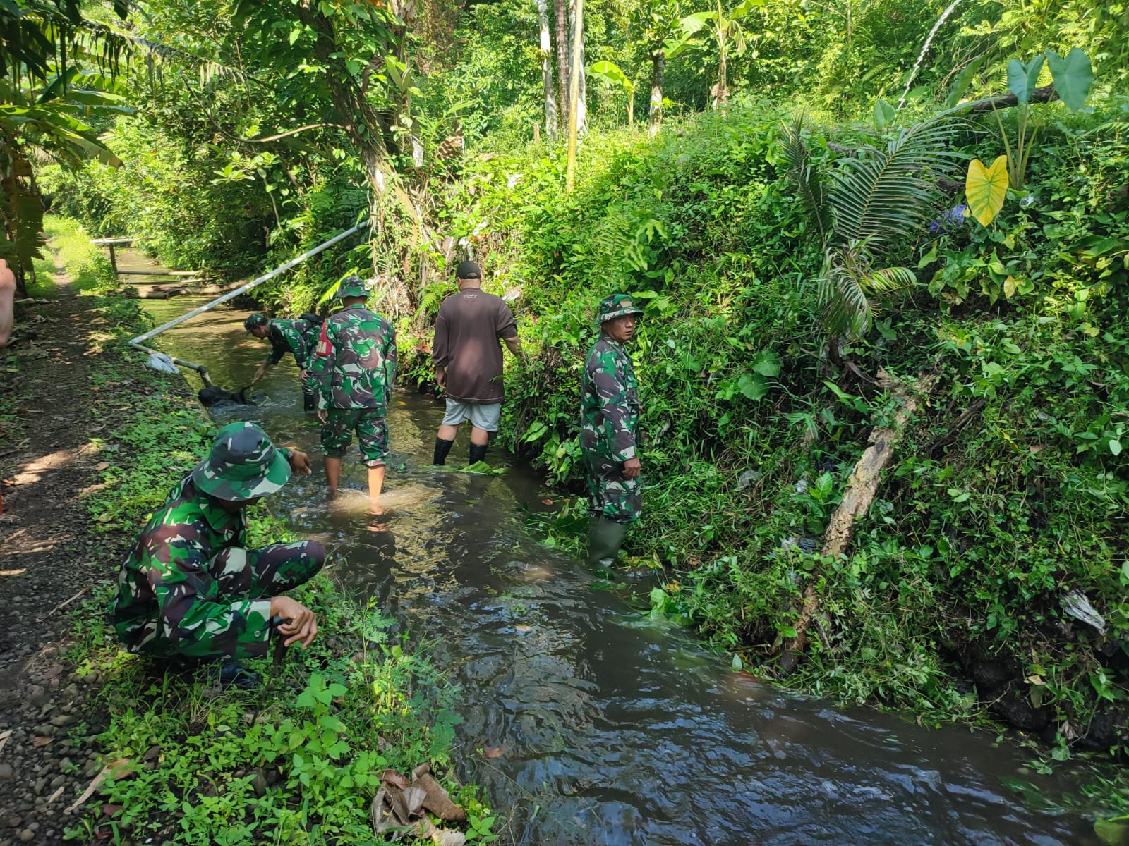 Banyumas – Koramil 24/Kedungbanteng Kodim 0701/Banyumas Korem 071/Wijayakusuma memperkuat kemanunggalan TNI dengan rakyat melalui Karya Bhakti pembersihan saluran irigasi, sebagai wujud kebersamaan dan gotong royong dalam memenuhi kebutuhan masyarakat di wilayah binaan.