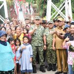 Kehadiran Letkol Inf Edward Samosir di lokasi bukan sekadar urusan teknis. Dengan langkah tegap namun hangat, Dandim menyusuri setiap jengkal jembatan, mengecek kekuatan sling baja hingga memastikan keamanan pijakan bagi warga.