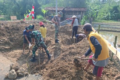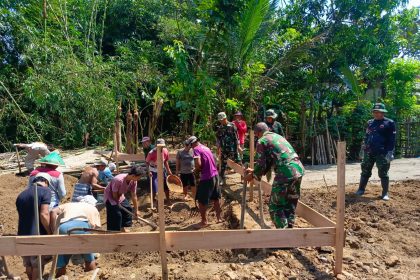 Banyumas – Semangat gotong royong terlihat nyata saat personel Kodim 0701/Banyumas bersama masyarakat Desa Cingebul, Kecamatan Lumbir, bahu-membahu melakukan penggalian tanah untuk pondasi Jemba...