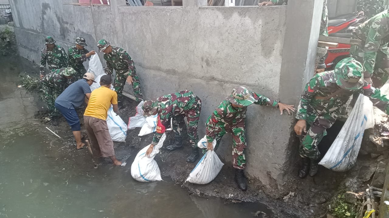 Banyumas – Anggota Kodim 0701/Banyumas Korem 071/Wijayakusuma dipimpin Pasiops Kodim 0701/ Banyumas Kapten Inf Nurkolis melaksanakan Kegiatan Karya Bakti pembersihan selokan bersama Anggota Kora...